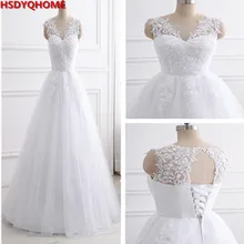 White Wedding Dress Lace Appliques Bridal Gowns Vestido De Novias Princess Long robe de mariee 2019 Ball Gown Elegant(China)